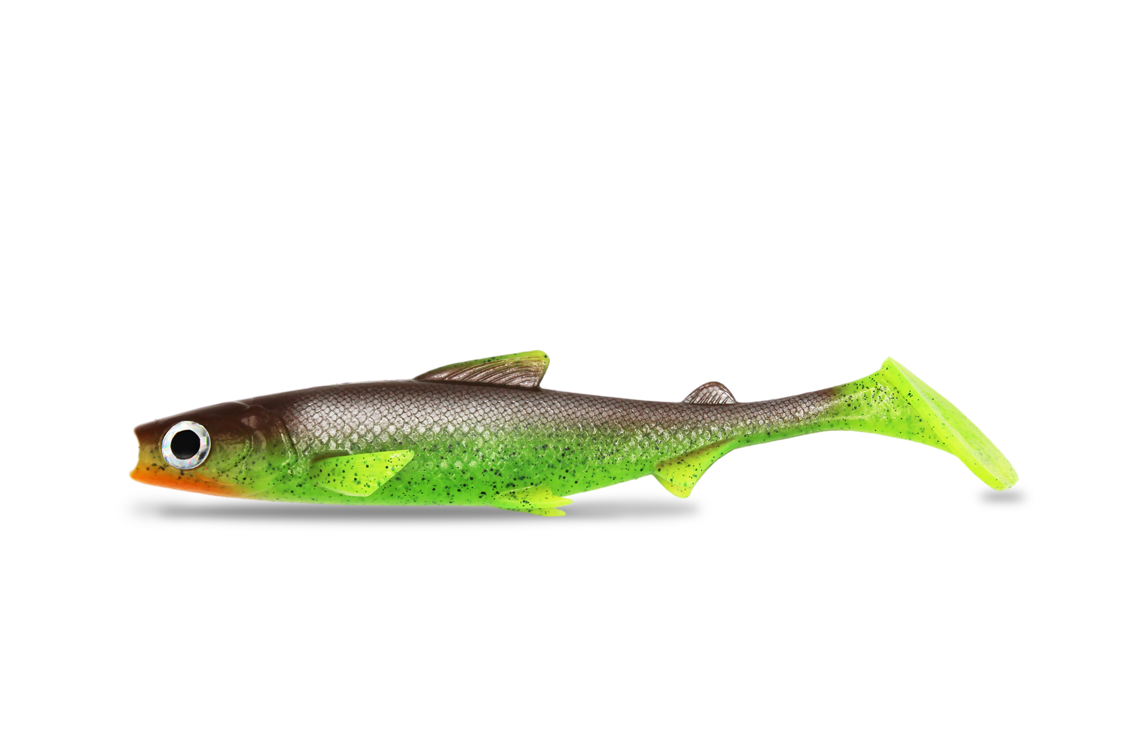 Der RenkyShad 22 cm ist die lang erwartete XL-Version des RenkyShads – mit eleganter, filigraner Schwimmaktion. Der breite Tellerschwanz in Kombination mit dem voluminöseren Körper erzeugt starke Druckwellen und eine leicht rollende Bewegung. Die abgeflachte Bauchpartie mit sechs seitlichen Flossen sorgt für Stabilität und natürlichen Lauf, selbst bei langsamer Führung.